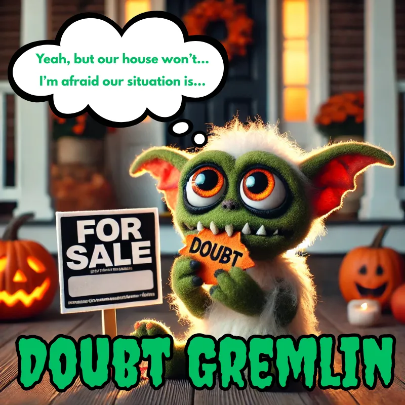 The Doubt Gremlin will creep in with thoughts of, "those other homes I see on the market look beautiful" or "my home is not ready." And beware his partner the Market Trickster who over analyzes the market timing and calculates the cost of not completing your to-do list.